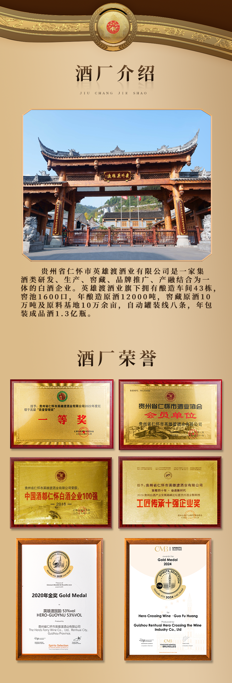 贵州省仁怀市英雄渡酒业有限公司成立于2004年,英雄渡前身起源于明末清初的“汪祖烧坊”,兴盛于改革开放时期,是贵州茅台之系的酱香型原酒。英雄渡酒类产业链联盟集商会、渠道连锁、电子商务、酒类交易、资本运营产融结合为一体的大系统平台。英雄渡是一家集酒类研发、生产、窖藏、品牌推广、产融结合为一体的家族企业。主营业务:基酒供应,基酒批发,定制酒,贴牌酒,企业定制酒,酱香白酒,酱酒,白酒,白酒厂家,酱酒厂家,茅台镇酒厂,白酒OEM贴牌厂家